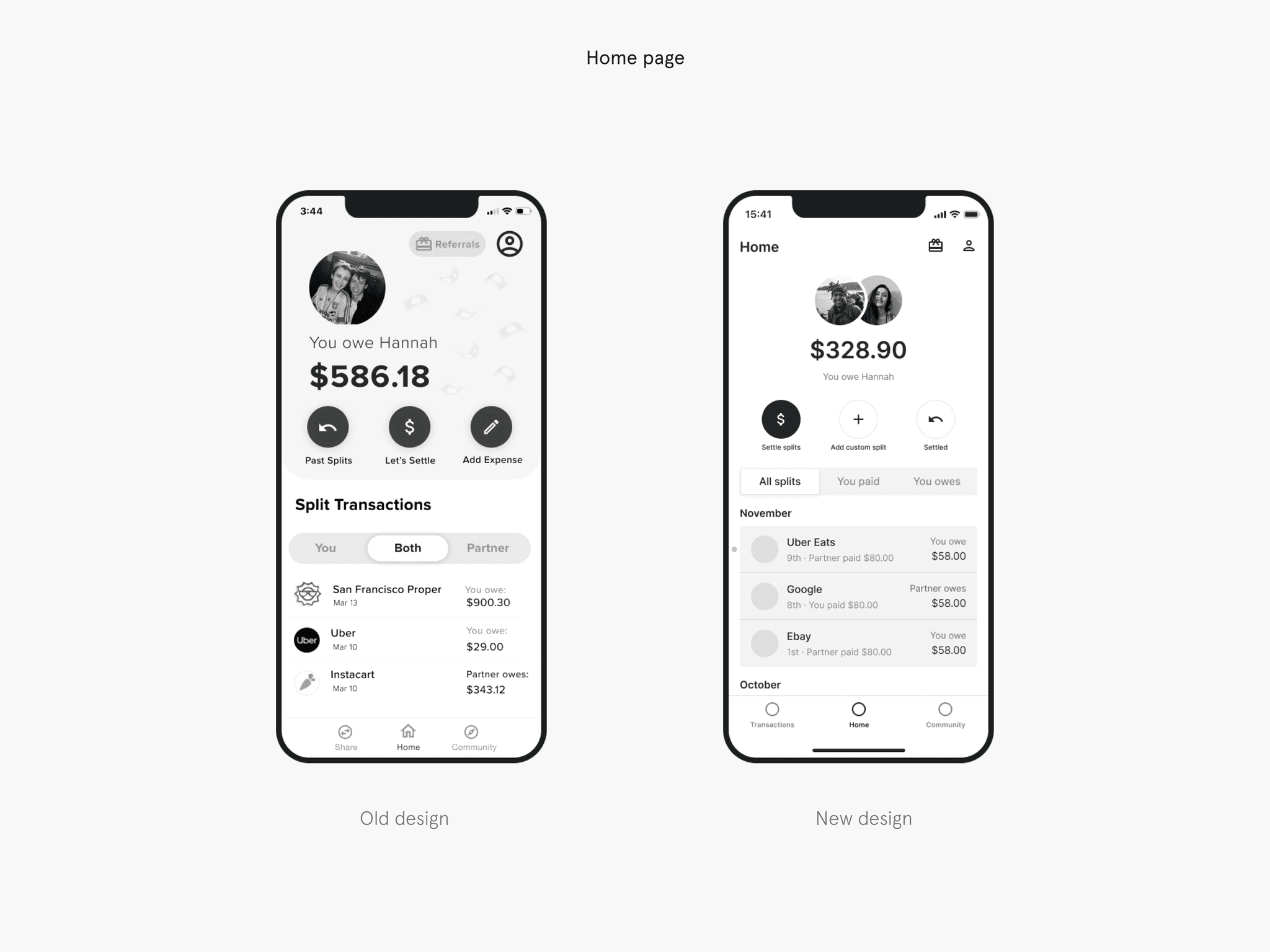 Finally, we addressed specific issues like inconsistent terminology on the Home page and unclear navigation in the Split expense section. Improvements included clearer labels, better button hierarchy, and the addition of essential information, all aimed at increasing the consistency and clarity of the app's interface. This comprehensive approach ensured that each feature was not only functional but also user-friendly, making financial management simpler and more accessible for our target audience.